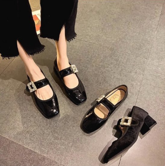 【取寄】チャンキーヒール パンプス スクエアトゥ ヒール 太めヒールパンプス 太めヒール ローヒール・・・