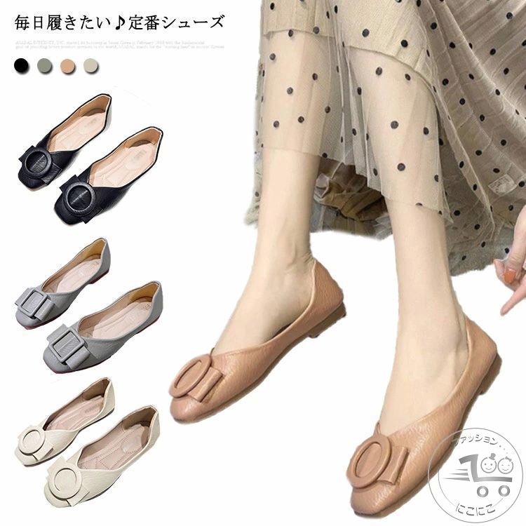 ベージュ エナメル フラット 無地 ぺたんこ 光沢 シューズ ワインレッド パンプス 秋 スクエアト・・・