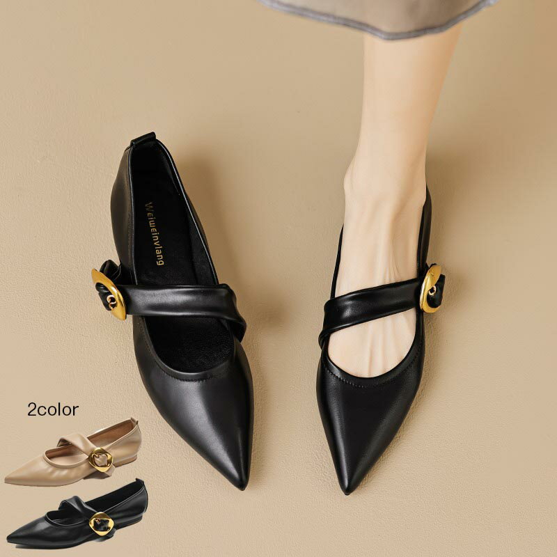 送料無料 パンプス ぺたんこ フラット ポインテッドトゥ レディース ぺたんこ バレエシューズ カジ・・・