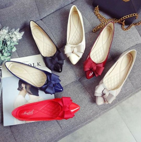 フラットパンプス リボン付き エナメル バレエシューズ ぺたんこ ローヒール オフィス 痛くない