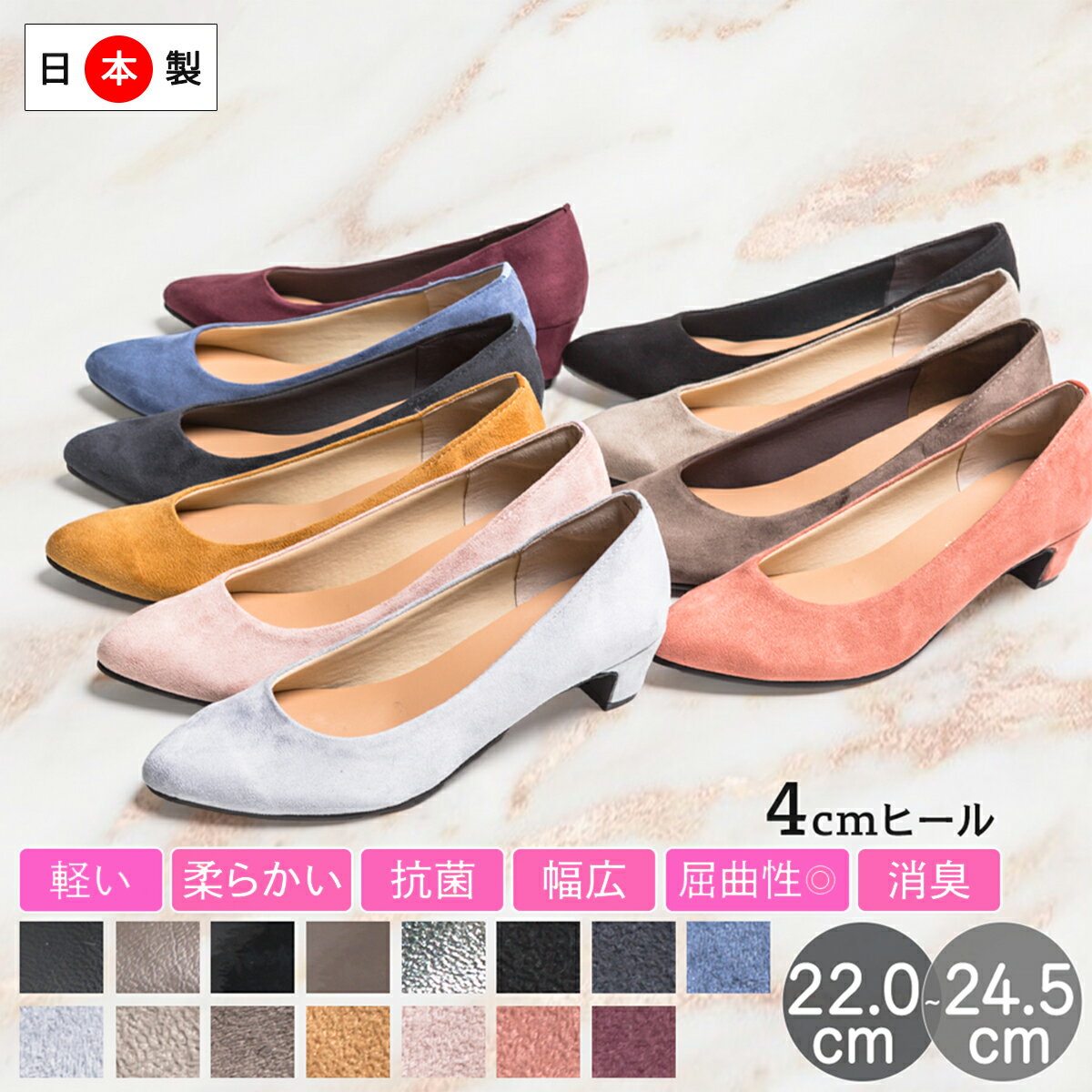 パンプス 痛くない アーモンドトゥ 4cm ヒール プレーン日本製 抗菌 消臭 ローヒール エナメル・・・