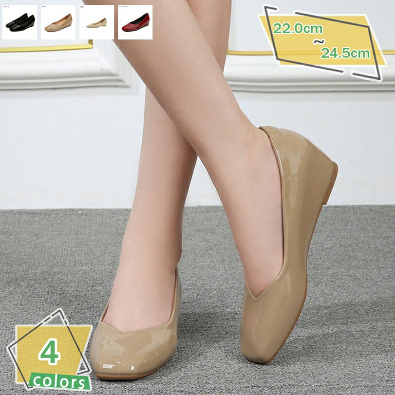 777円OFFクーポン エナメル パンプス スクエアトゥ ウェッジソール レディース ローヒール フ・・・
