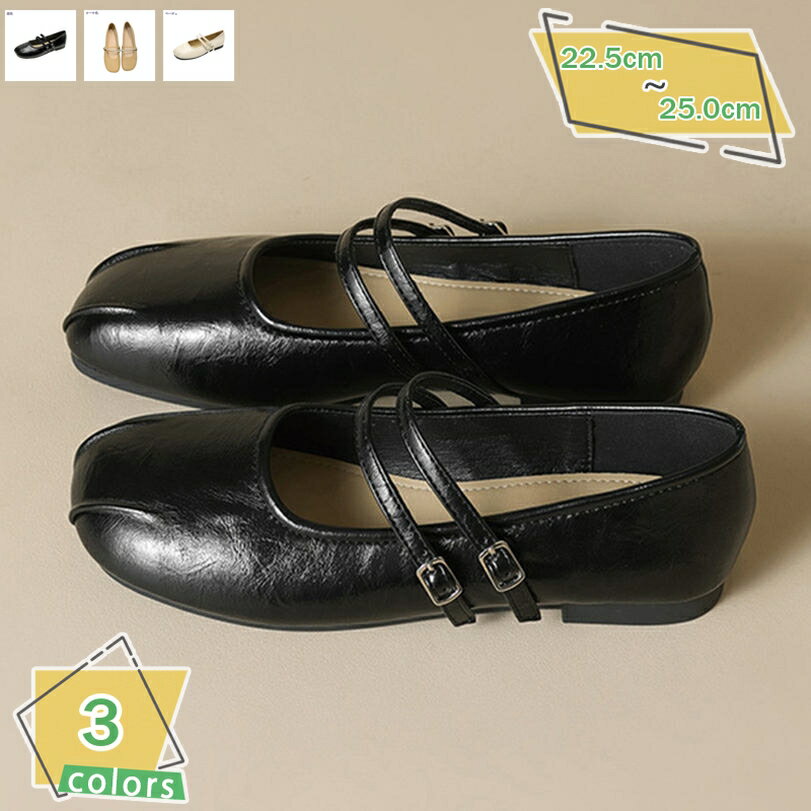 送料無料 パンプス ストラップ 痛くない ローヒール ぺたんこ 黒 ブラック 柔らかい vカット 大・・・