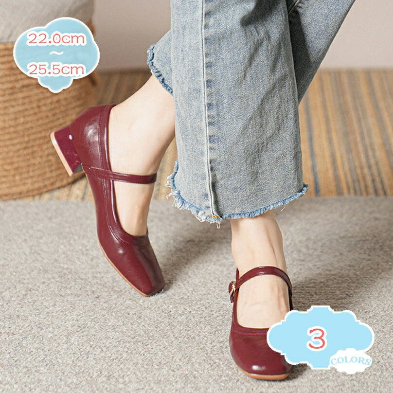 4種類 スクエアトゥ ヒール チャンキー レディース パンプス ペタンコ ストラップ付 ベルベット ・・・