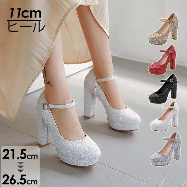 パンプス レディース キラキラ ブライダルシューズ 結婚式 ウェディングシューズ アンクルストラップ・・・