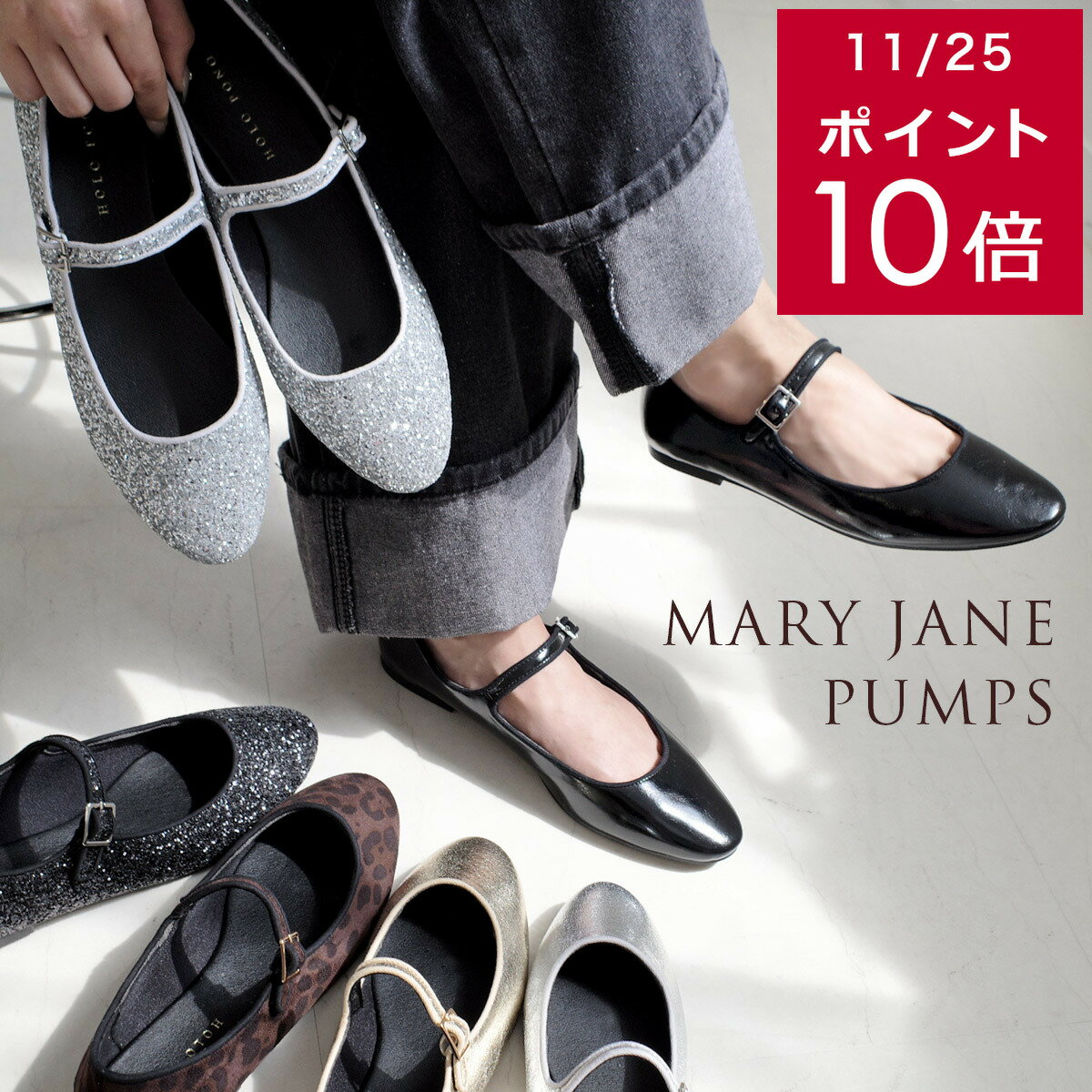 200円クーポン11/27迄★パンプス ぺたんこ 歩きやすい 疲れない メリージェーン グリッター ・・・