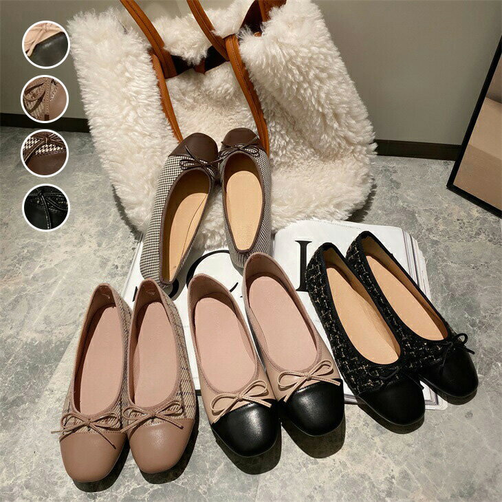 【半額クーポン対象】バレエシューズ リボン シンプル ストラップ パンプス バイカラー ぺたんこ 靴・・・