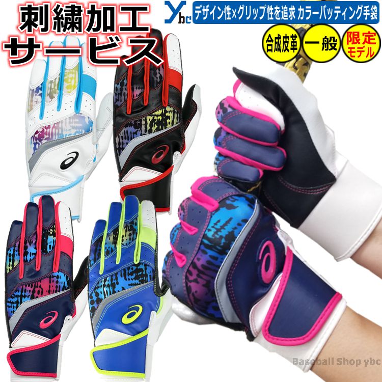 野球 ソフトボール 刺繍加工サービス 大人用 アシックス 野球 一般バッティング手袋 一般用 限定カ・・・