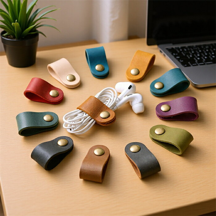 intime ケーブルホルダー コードクリップ イヤホンケーブル コード まとめる コードリール 革・・・