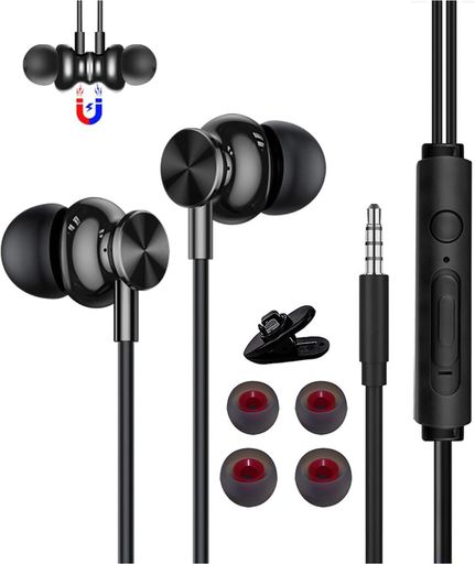 イヤホン3m有線イヤホンマイク付き磁気設計ノイズキャンセリングステレオイヤフォン延長ケーブルインナー・・・