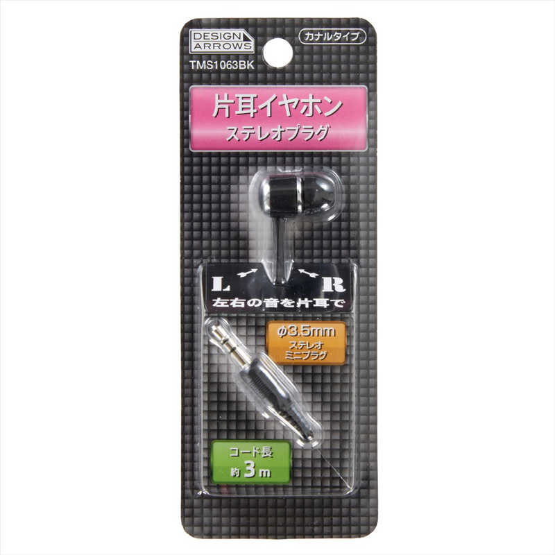 ヤザワ イヤホン カナル型 片耳・3m ブラック [φ3.5mm ミニプラグ] TMS1063BK