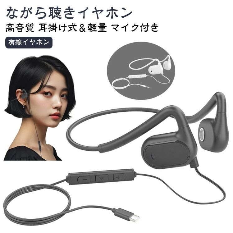 イヤホン 有線 3.5mm Type-C マイク付き 耳を塞がない マイク付きイヤホン クリア音質 ・・・