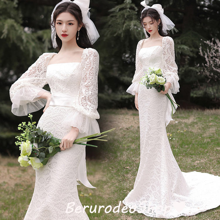 ウエディングドレス 結婚式 パーティードレス 長袖 マーメイドドレス マーメイドラインドレス 二次会・・・