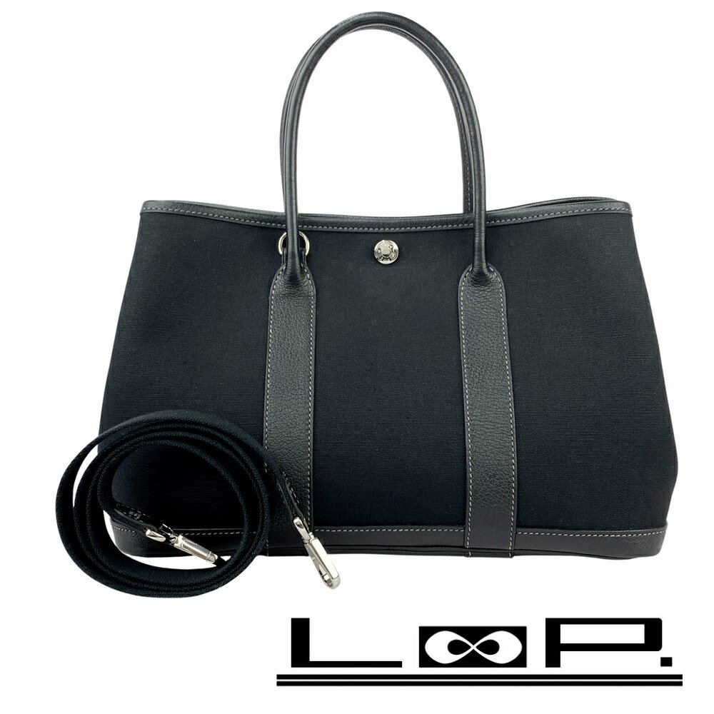エルメス ■美品■ ガーデンパーティTPM ハンド ショルダー バッグ キャンバス レザー 黒 □H・・・