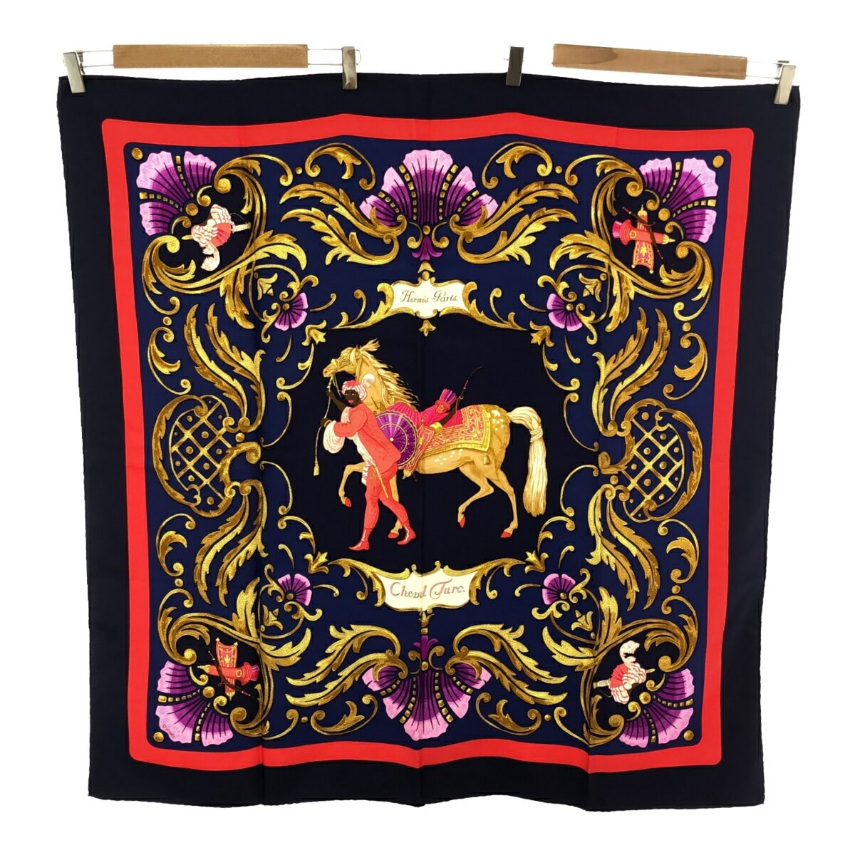 質屋 エルメス HERMES スカーフ カレ90 Cheval Turc トルコの馬 シルク ブルー・・・