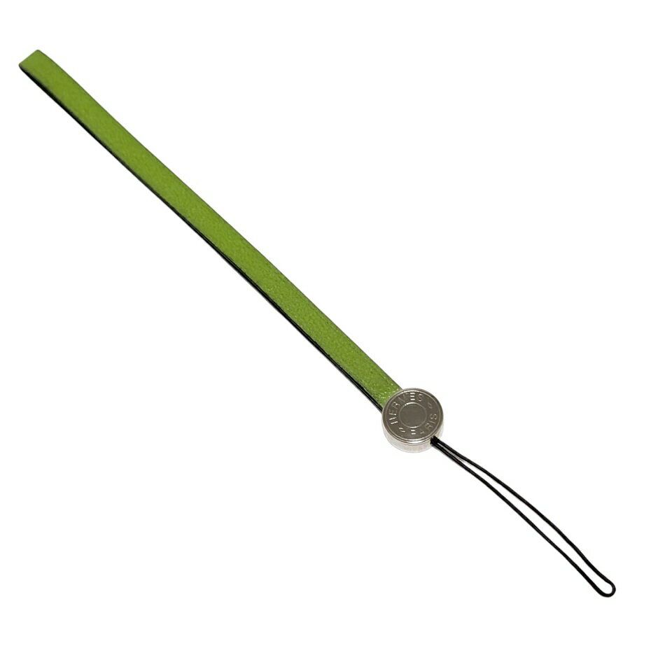 エルメス ストラップ セリエ 携帯ストラップ グリーン 黄緑 レザー シルバー金具 HERMES キ・・・