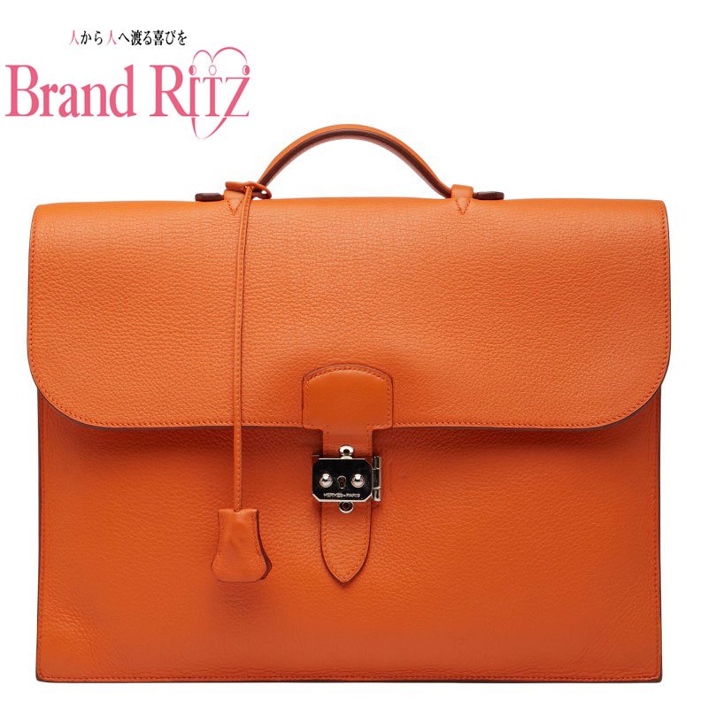 中古 エルメス サックアデペッシュ38 ビジネスバッグ ブリーフケース ABランク オレンジ トリヨ・・・
