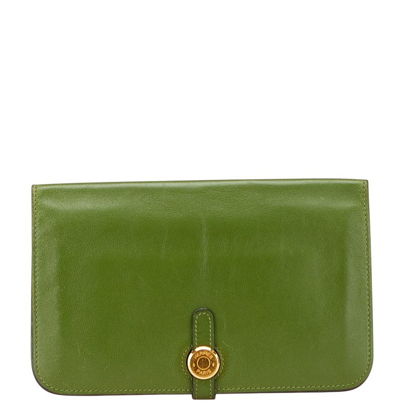 エルメス ドゴンGM 二つ折り財布 グリーン系 スイフト レディース HERMES 【中古】