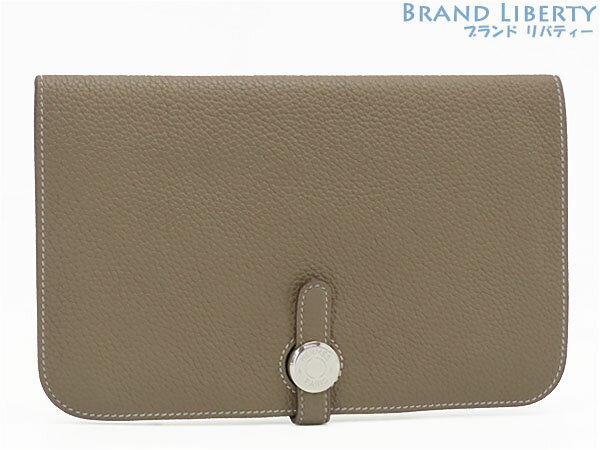 【超美品】エルメス HERMES ドゴン デュオ GM 二つ折り長財布 コインケース付き エトゥープ・・・