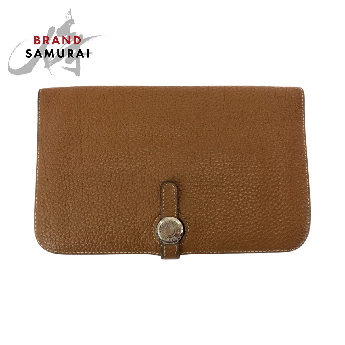HERMES エルメス ドゴンGM ゴールド ブラウン シルバー金具 トゴ 長財布 ロングウォレット・・・