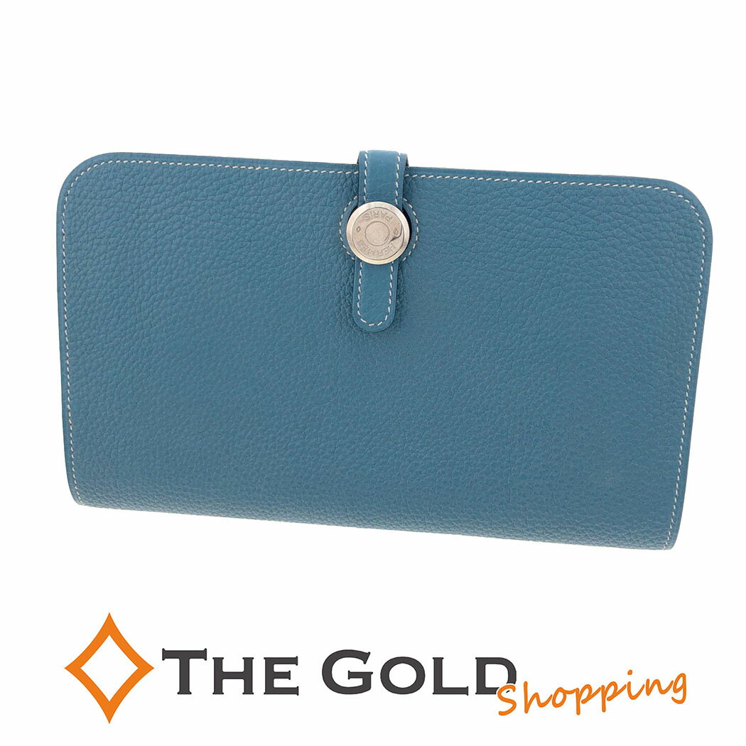 HERMES ドゴンGM □P 2012年 ブルージーン シルバー金具 二つ折り長財布 レディース ・・・