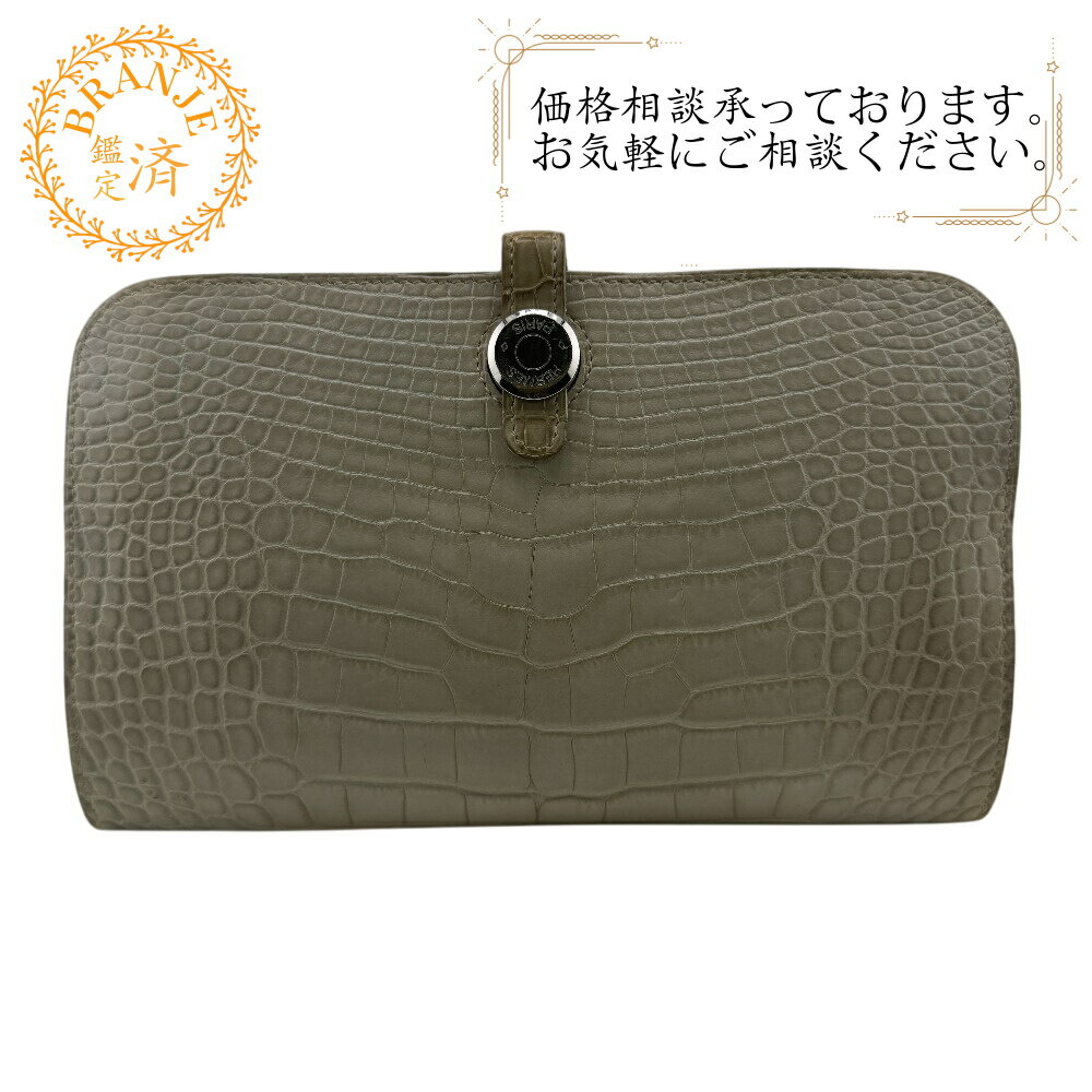 HERMES エルメスドゴン GM 2つ折り長財布クロコ アリゲーター 深いレッド系(赤系)□R刻/・・・
