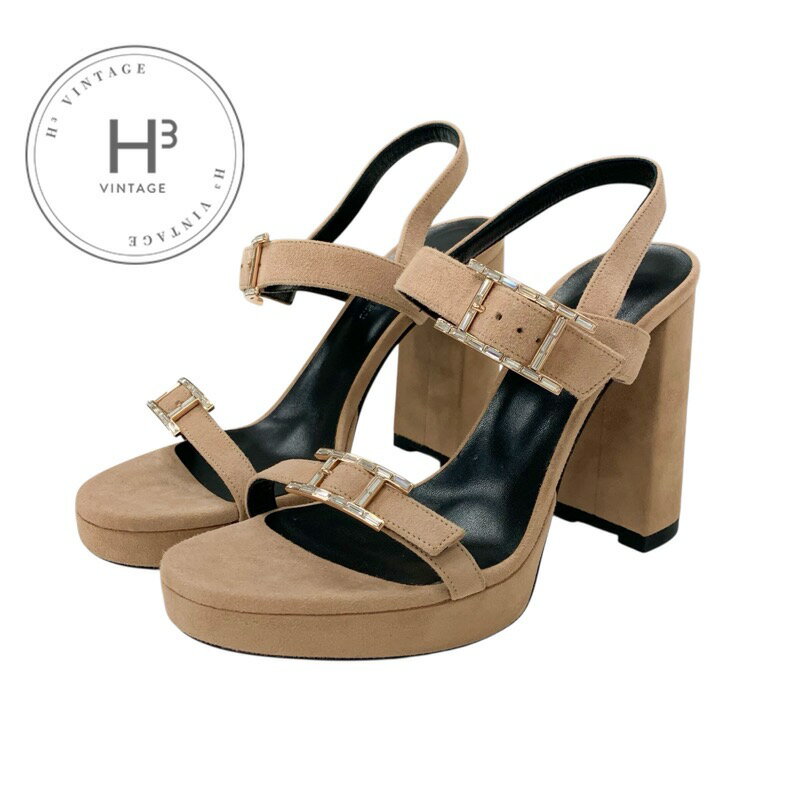 エルメス HERMES サンダル 靴 シューズ スエード ピンクベージュ ピンクゴールド Hバックル・・・