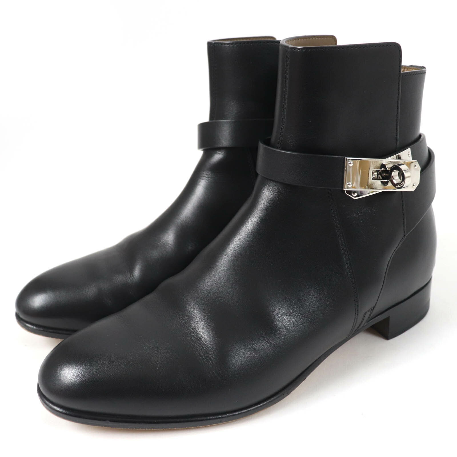 美品☆HERMES エルメス ネオ シルバー金具 ケリーバックル レザー ショートブーツ ブラック ・・・