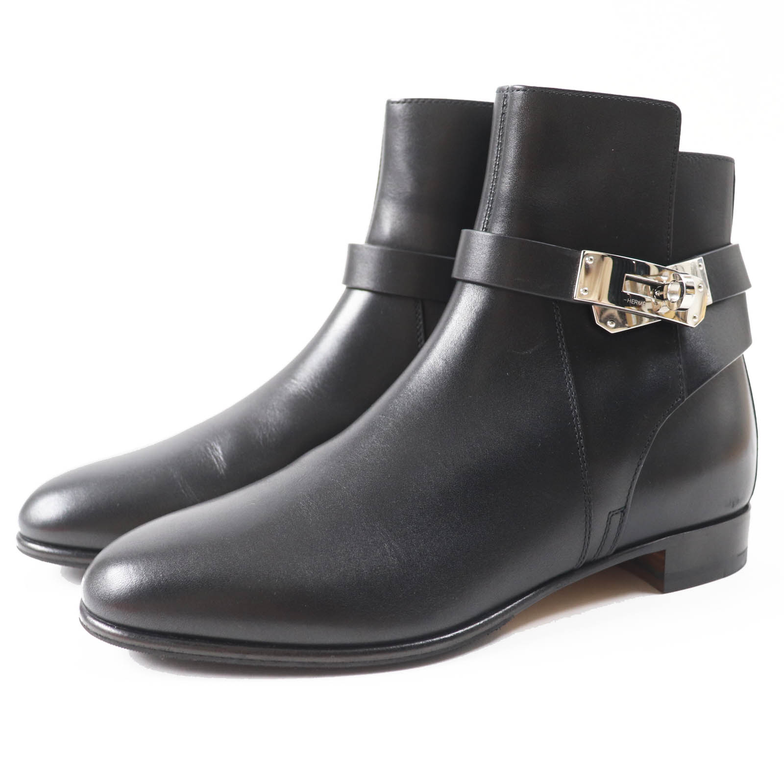 美品◎HERMES エルメス ネオ シルバー金具 ケリーバックル レザー ショートブーツ ブラック ・・・