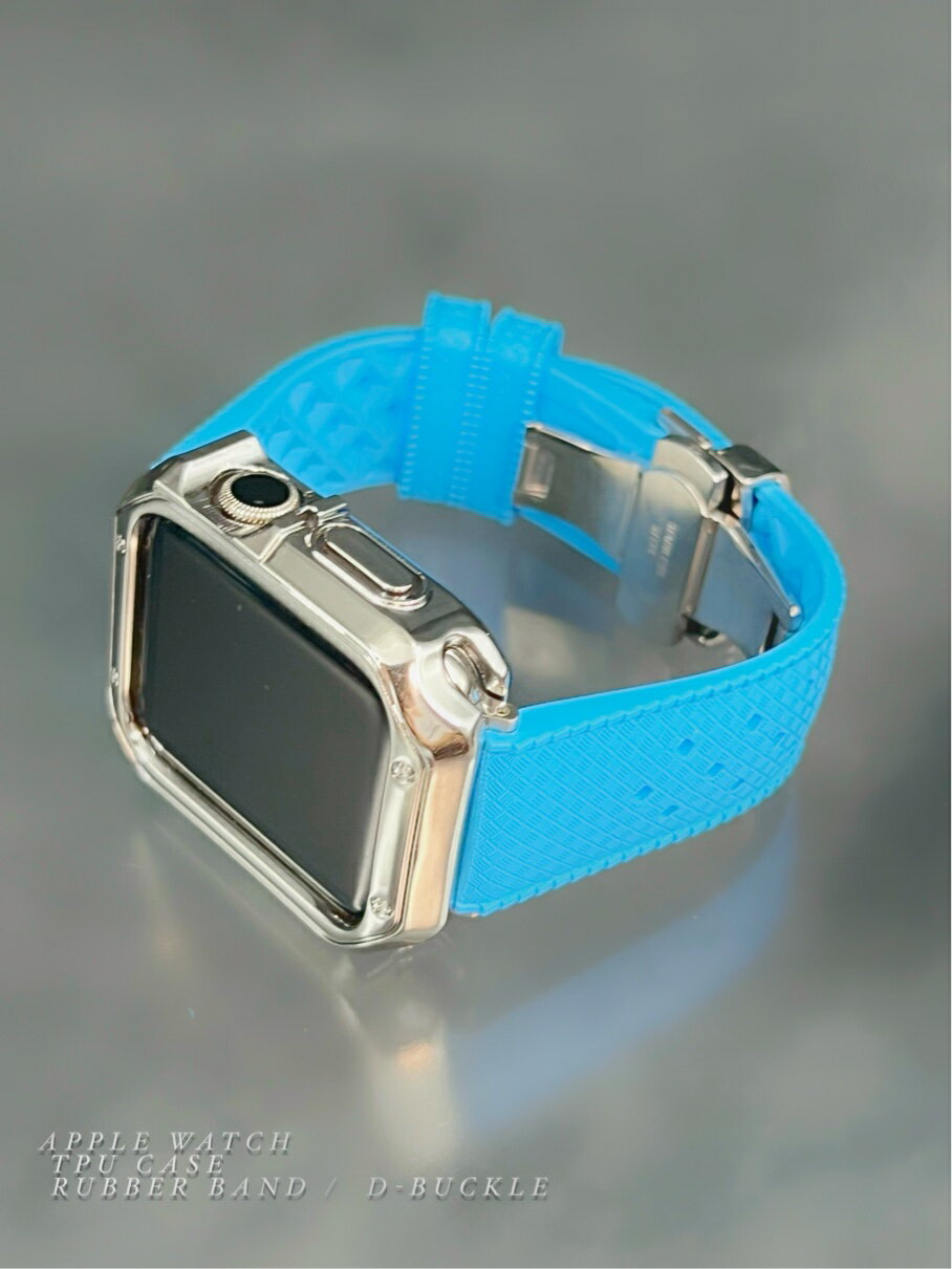 アップルウォッチ クローム TPUケース ホール ラバー ベルト Dバックル付き セット 49mm ・・・