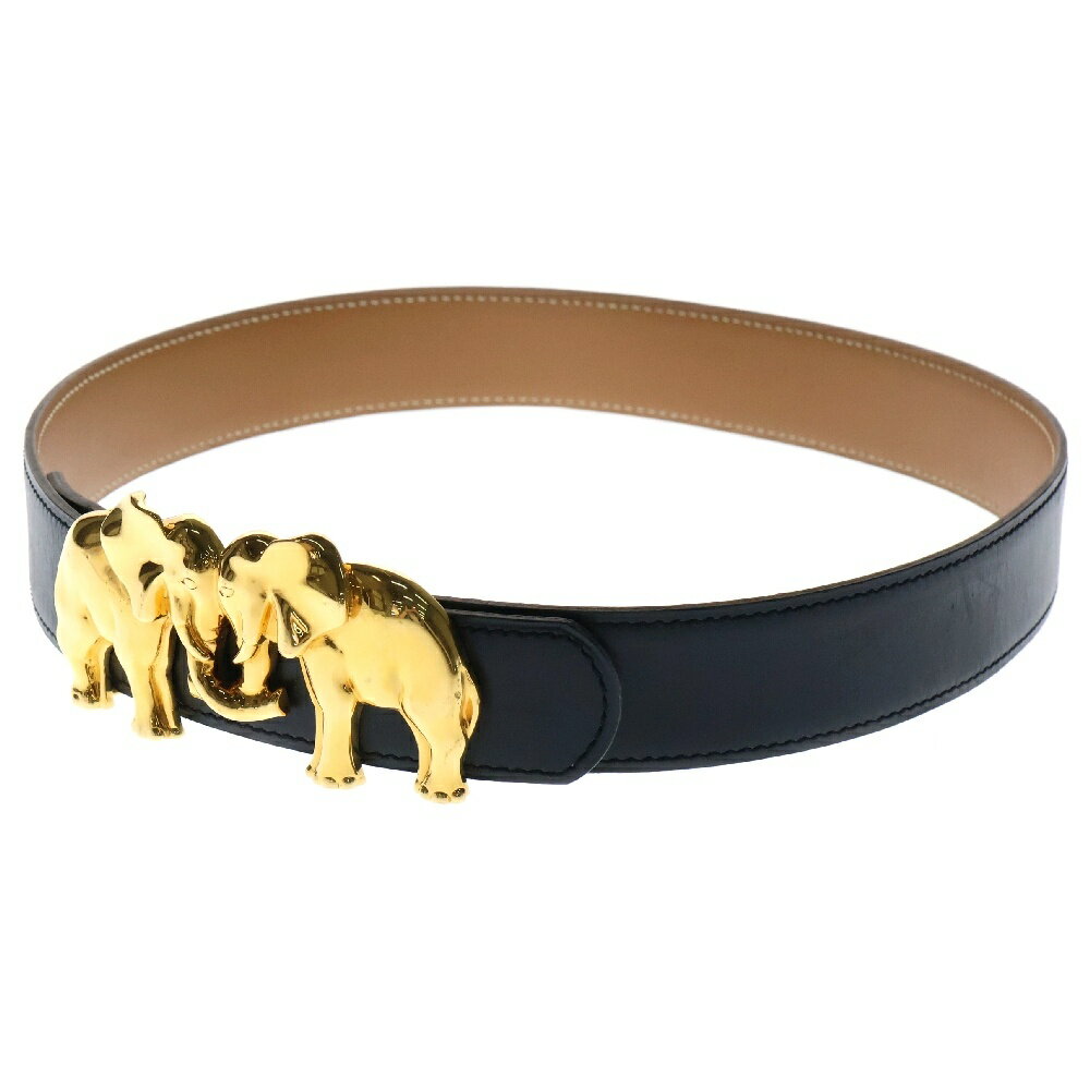 HERMES(エルメス) サイズ:- ベルト バックル ボックスカーフ アニマルモチーフ 黒×ブラウ・・・