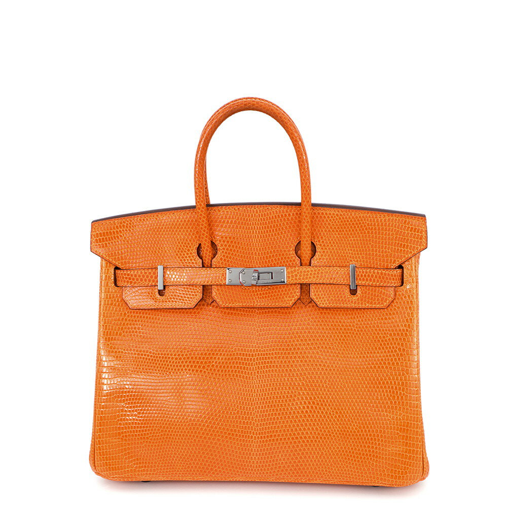エルメス バーキン25 オレンジ/ルテニウム金具 リザード □J刻印 HERMES Birkin ハ・・・