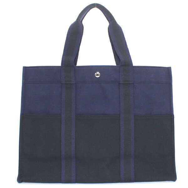 【中古】 エルメス トートバッグ フールトゥ PM キャンバス ネイビー ブラウン HERMES エ・・・