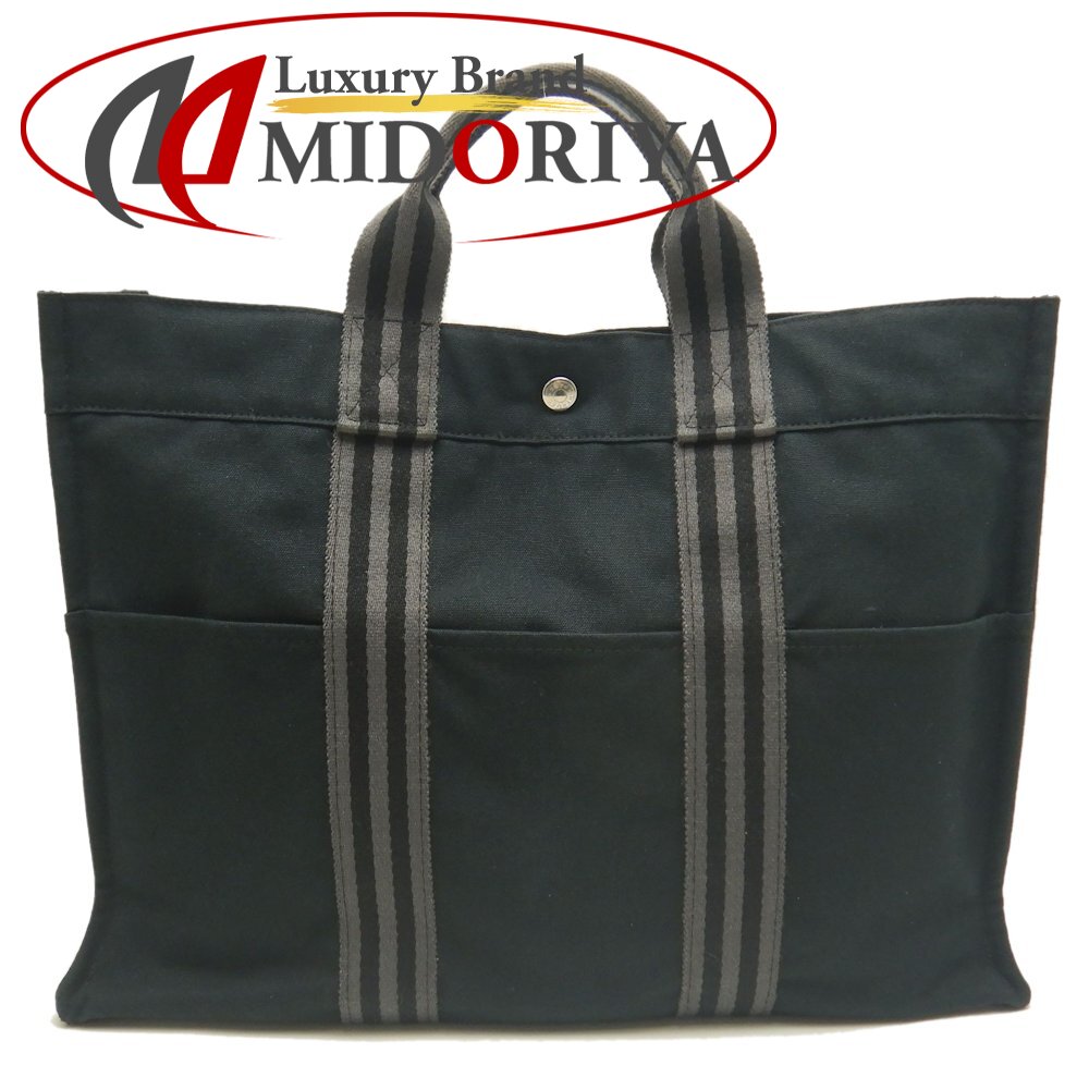 HERMES エルメス フールトゥ トートMM トートバッグ コットン ブラック グレー メンズ /・・・