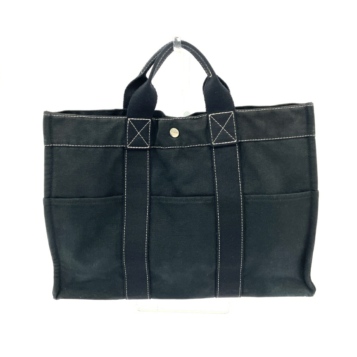 HERMES エルメス トートバッグMM フールトゥドーヴィル キャンバス ブラック ユニセックス【・・・