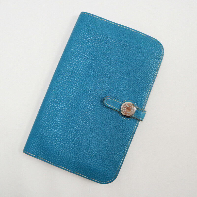 【HERMES】エルメス ドゴンGM 二つ折り長財布 トゴ ブルージーン×シルバー金具 □J刻印 2・・・