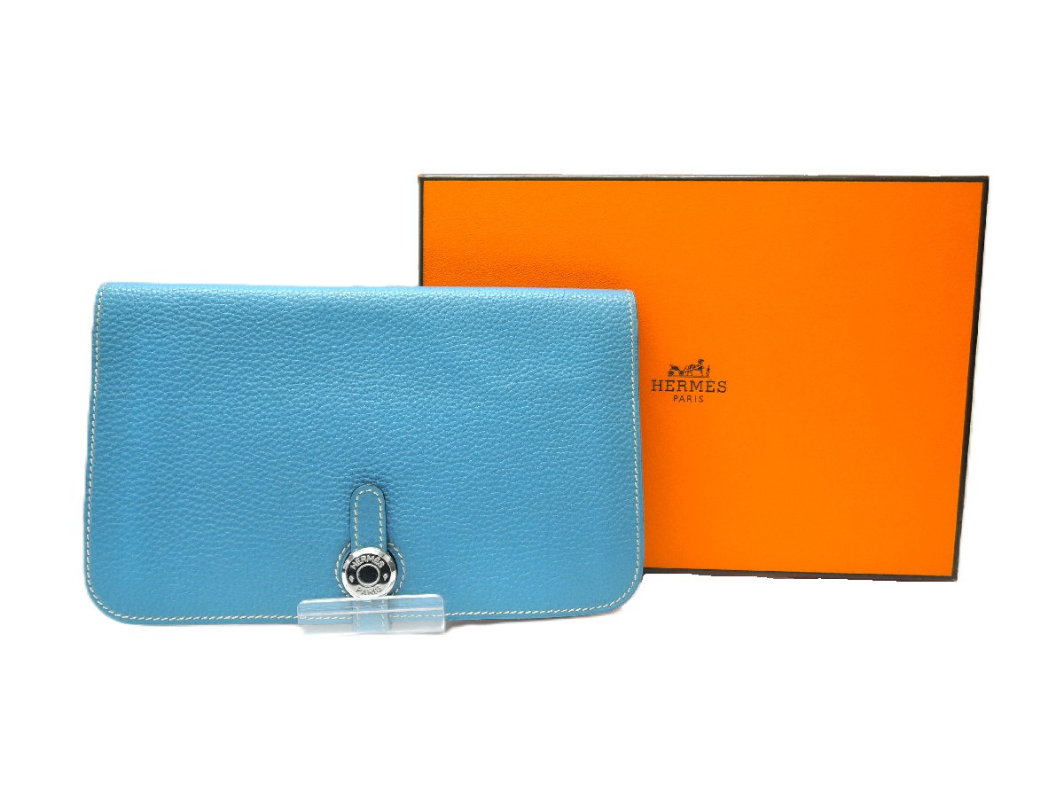 エルメス HERMES ドゴンドュオ □K刻印 2007年 長財布 ブルージーン 中古 BOX付 ラ・・・