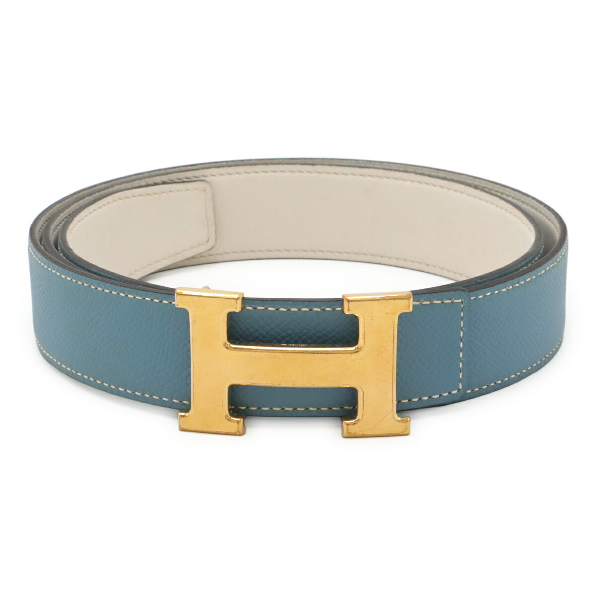 HERMES エルメス Hベルト Hバックル リバーシブル トゴ レザー ブルージーン 水色 ホワイ・・・
