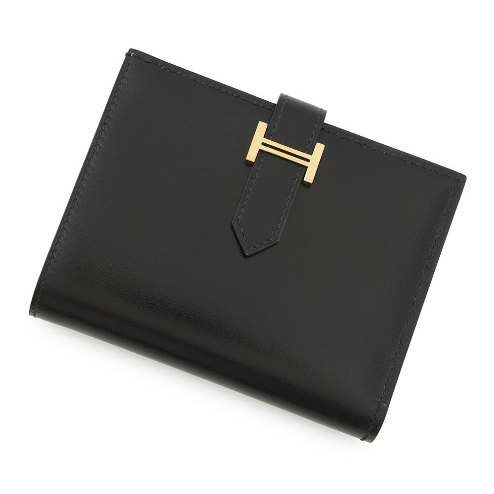 エルメス 二つ折り財布 ベアンコンパクト ブラック/ゴールド金具 ボックスカーフ C刻印 HERME・・・