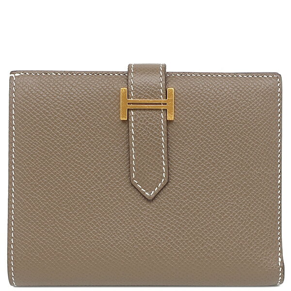 エルメス 二つ折り財布 ベアンコンパクト ヴォーエプソン グレー グレージュ 中古