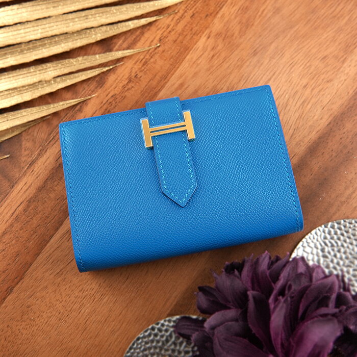 エルメス ベアン コンパクト ブルーサフィール エプソン シルバー金具 HERMES Bearn C・・・