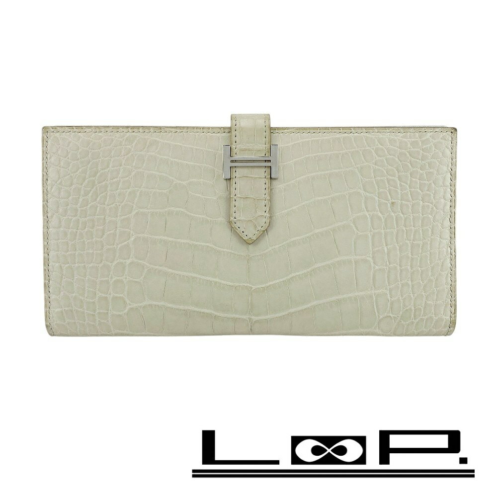 ■中古■ エルメス ベアン 2つ折り 財布 ウォレット クロコ アリゲーター ベトン ホワイト A刻・・・