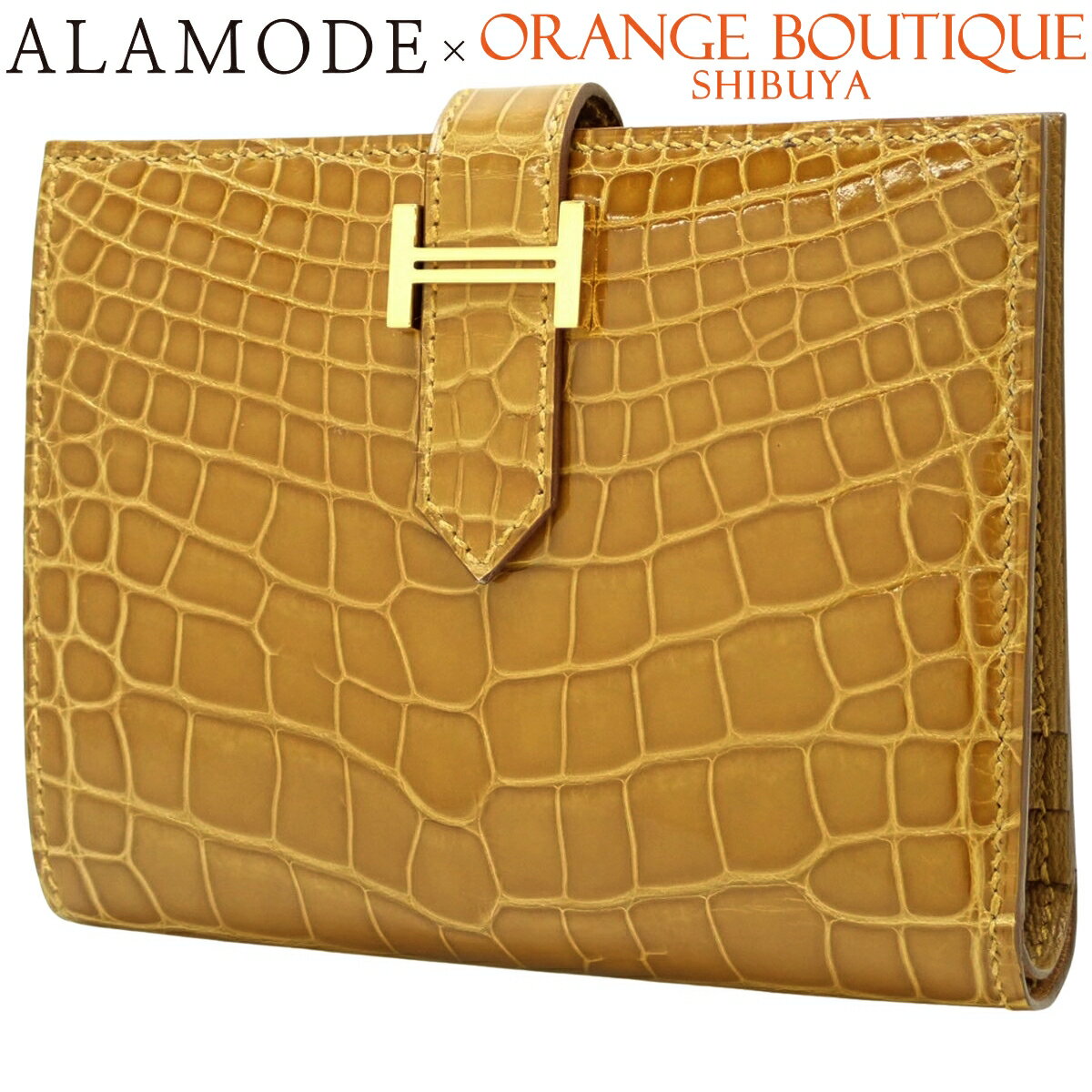 HERMES(エルメス) ベアンコンパクト クラフト キャメル茶 アリゲーター クロコダイル ゴール・・・