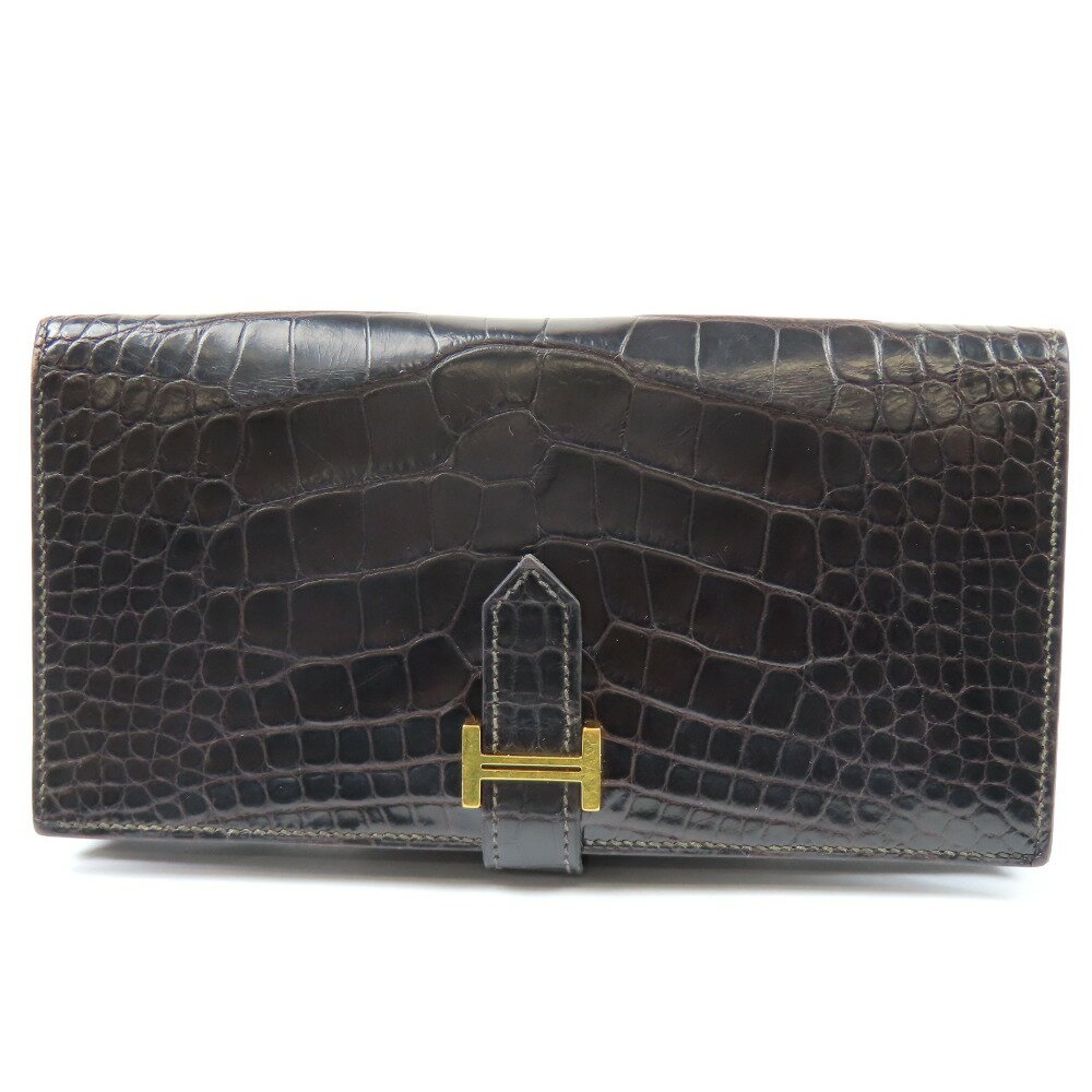 エルメス ベアンスフレ クロコダイル 鰐革 ワニ 長財布 アリゲーター ブラック T刻印【中古】綺麗・・・
