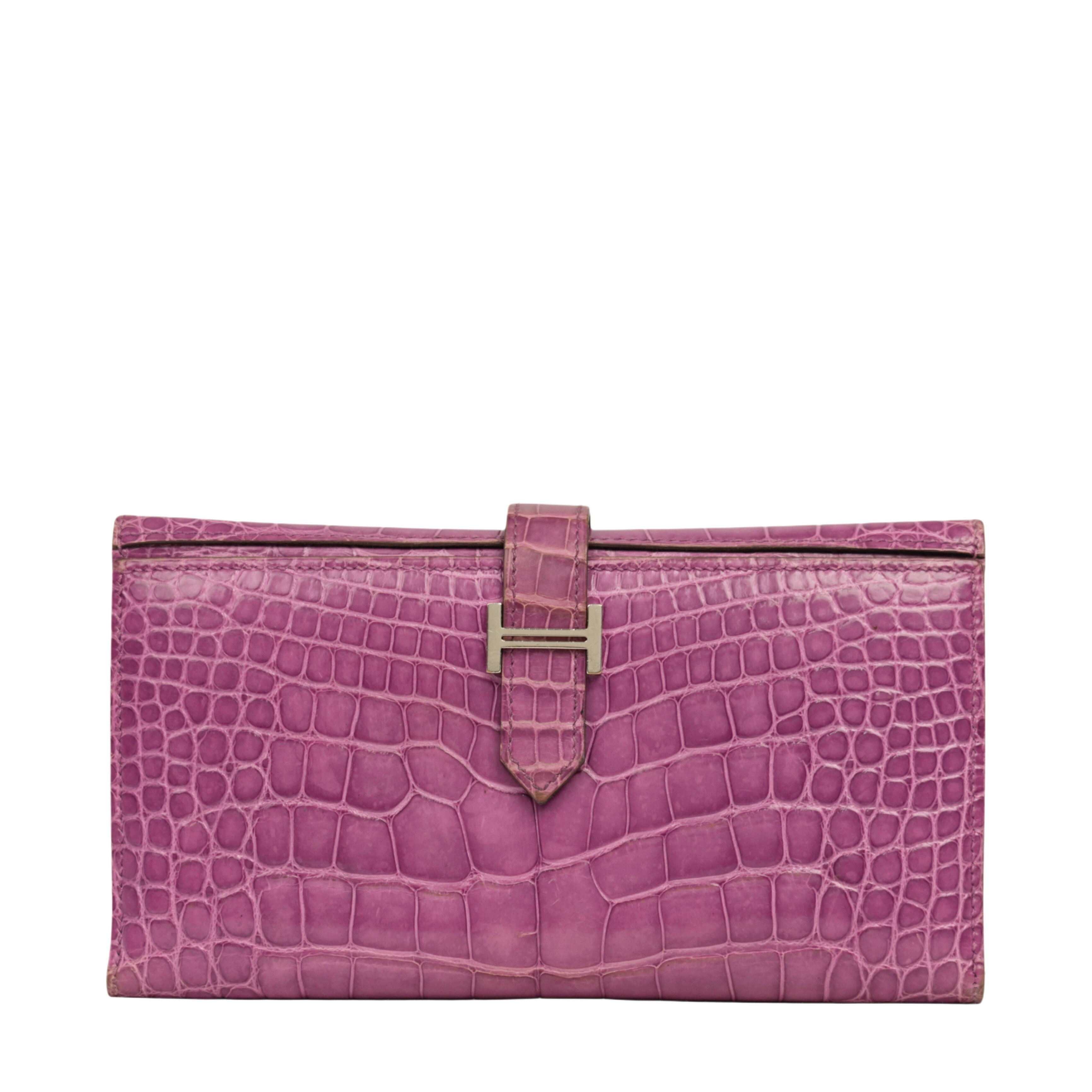 【中古・VINTAGE】 HERMES エルメス ベアンスフレ クロコダイル 長財布 パープル シル・・・