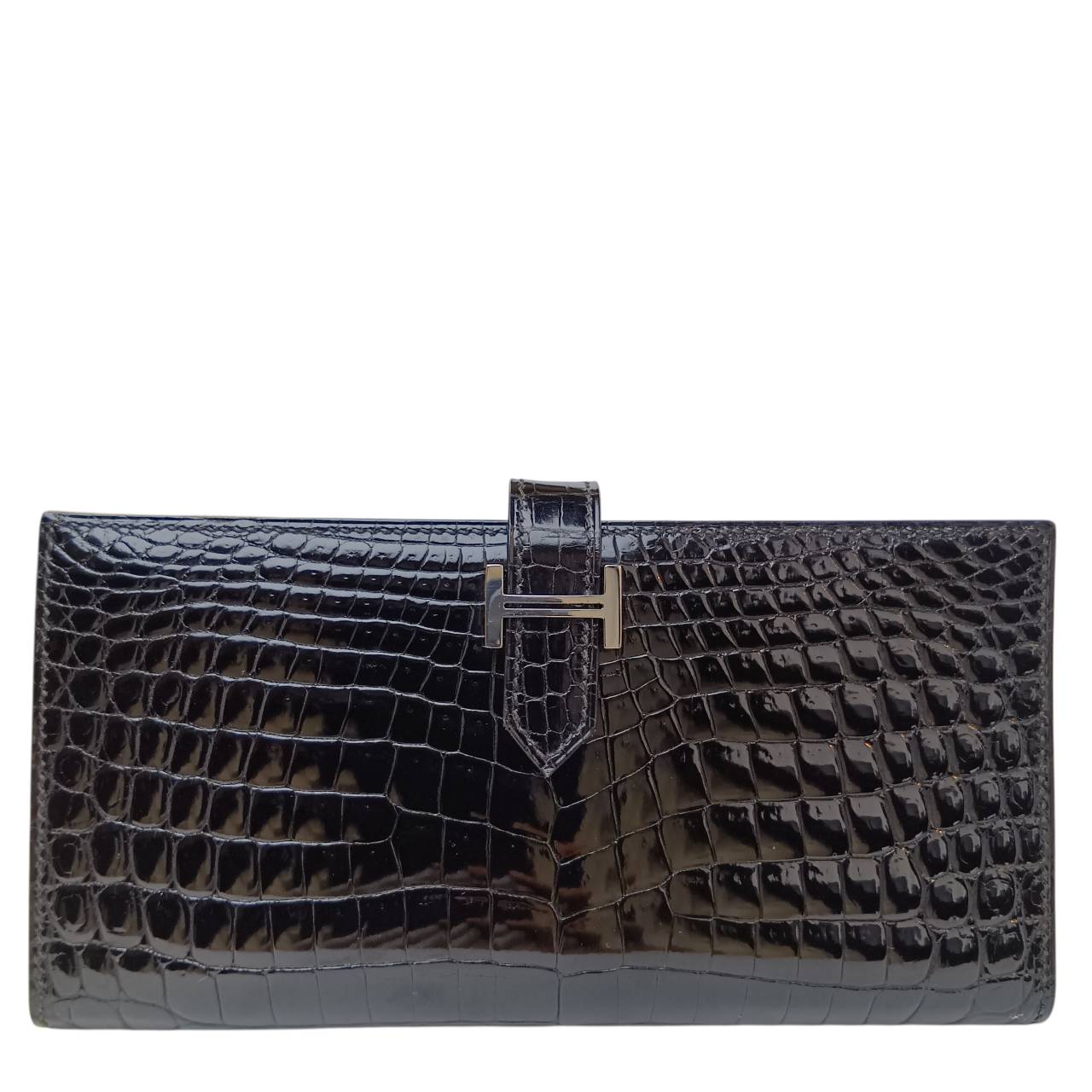 HERMES エルメス ベアンスフレ 黒 (ブラック) クロコダイル アリゲーターマット シルバー金・・・