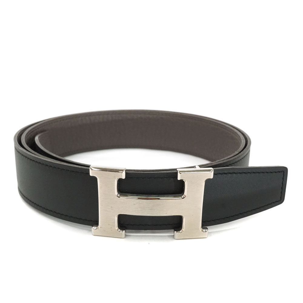 エルメス Hermes Hベルト コンスタンスベルト レザー ブラック グレージュ シルバー金具 フ・・・