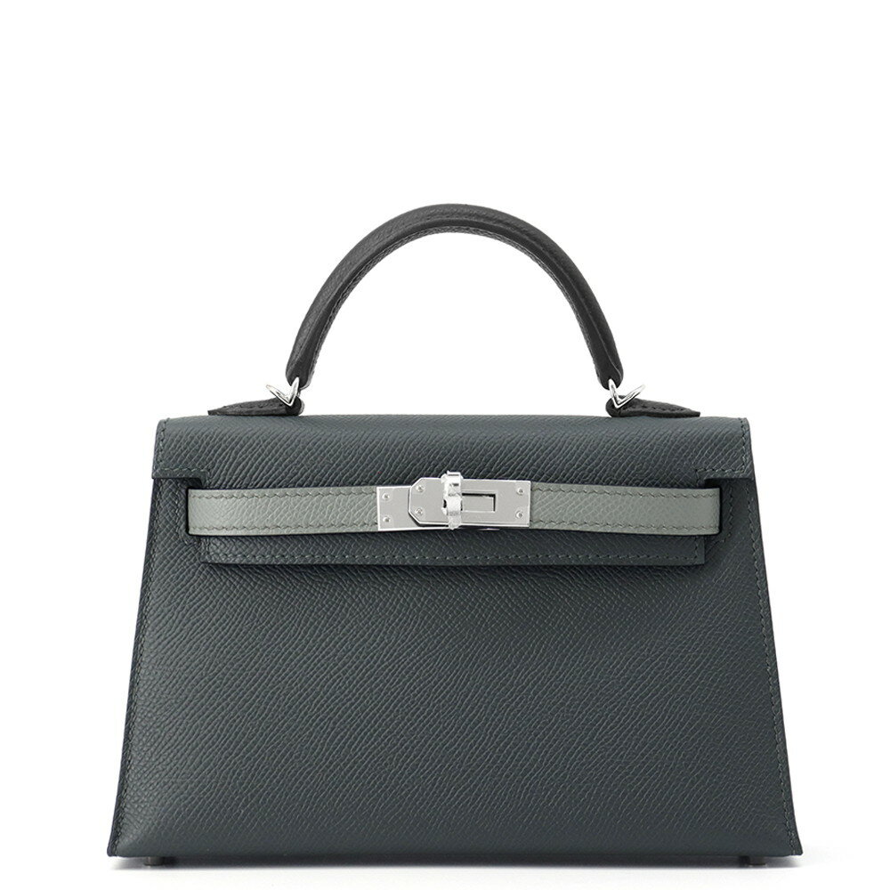 エルメス ミニケリー2 外縫い トリコロール ヴェールマングローブ/ヴェールアマンド/ブラック/シル・・・
