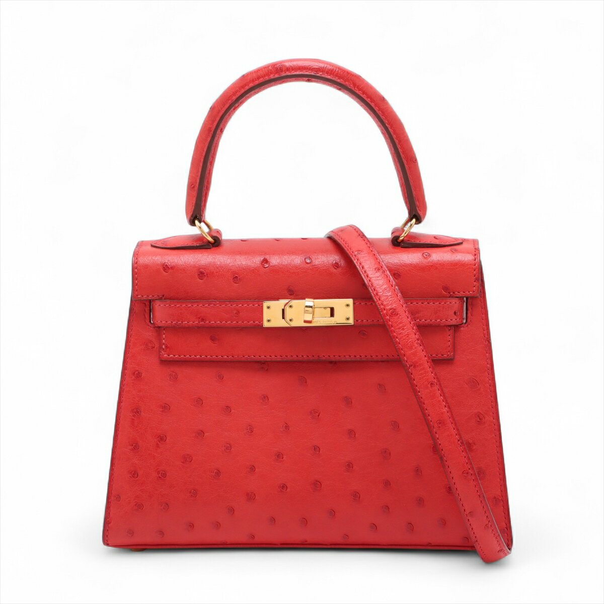 【中古】エルメス ミニケリー20 オーストリッチ レッド ゴールド金具 刻印不明 スターマーク