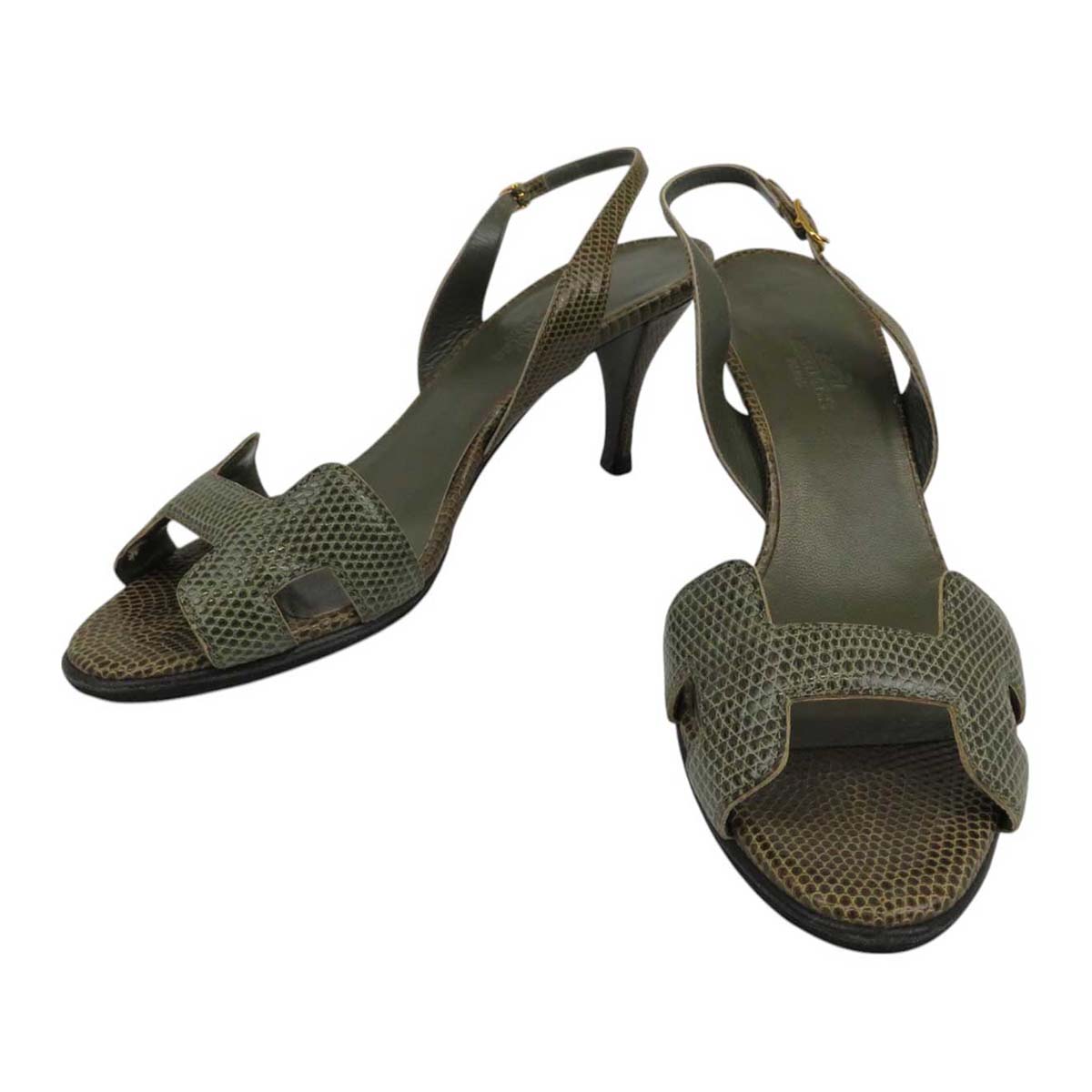 エルメス リザード サンダル レディース グリーン HERMES 【中古】 【アパレル・小物】